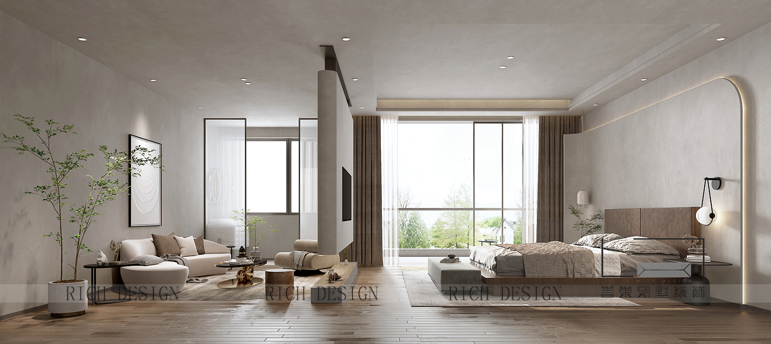 侘寂之美建筑不喧,自有聲。空間不言,自從容。侘寂美學所描繪出的溫潤靜美,是一種干凈、純粹兼具生命力的大美,無需華實的筆墨。簡樸至極,亦是高貴。“業主所向往的生活,純粹干凈、直率分明,浸潤著藝術的高雅氣質與質樸格調。而這種“高雅質樸”與業主自身的信仰訴求相輔相成。對于設計師而言